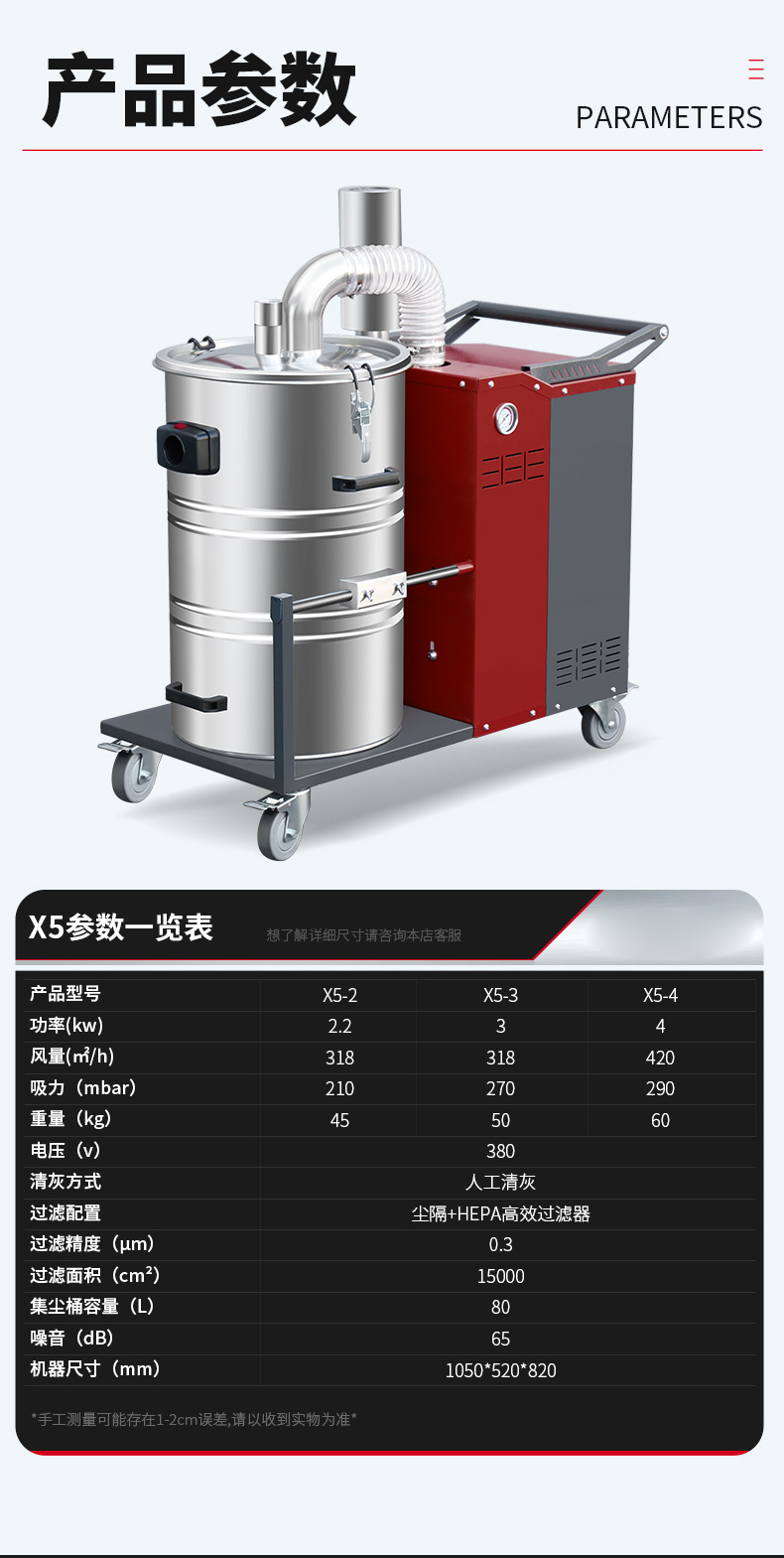 济宁坦洁380V双桶不锈钢工业吸尘器X7系列