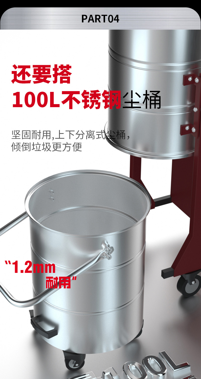 济宁坦洁220V单桶不锈钢工业吸尘器X6系列